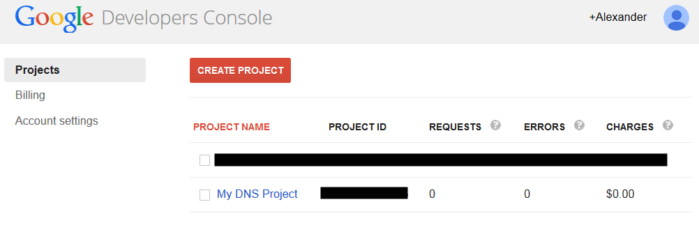 Create a new project and choose a descriptive project name such as “My DNS Project”