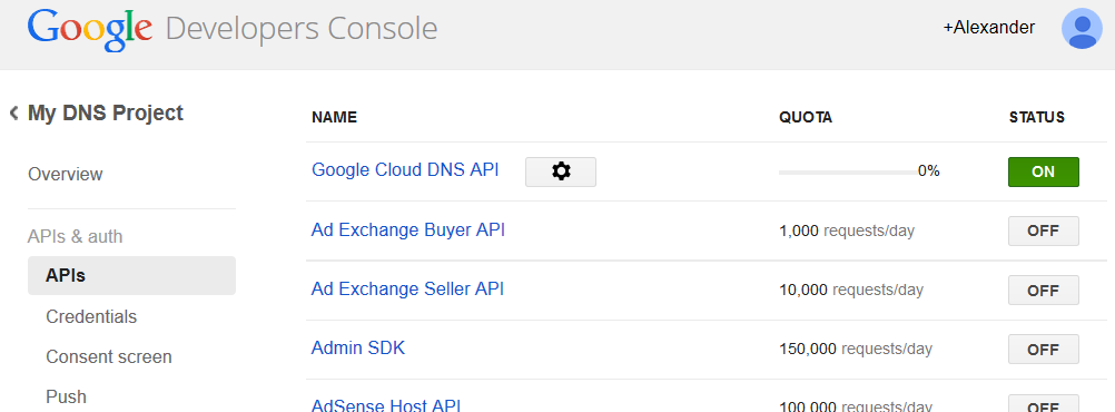 Enable “Google Cloud DNS API”